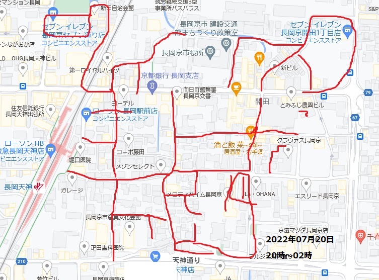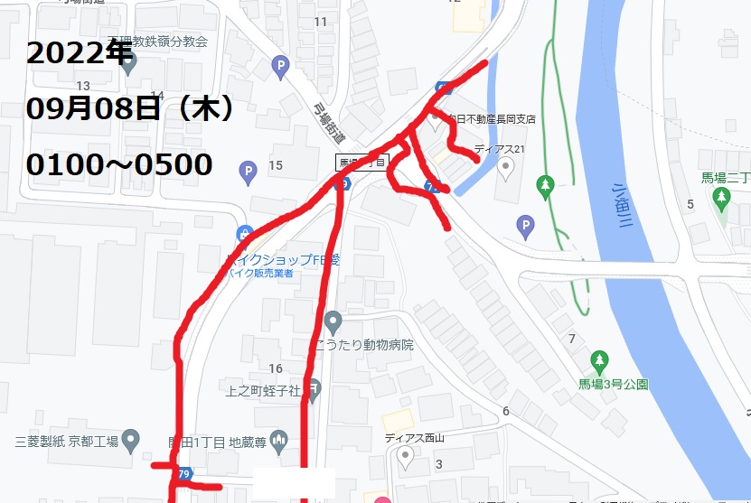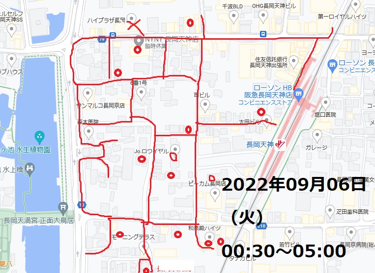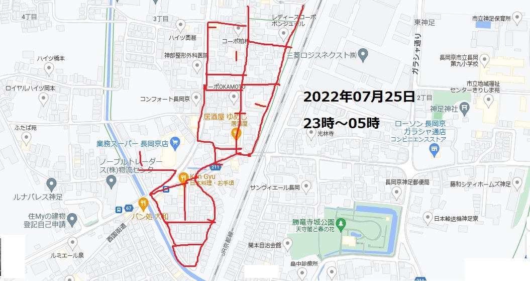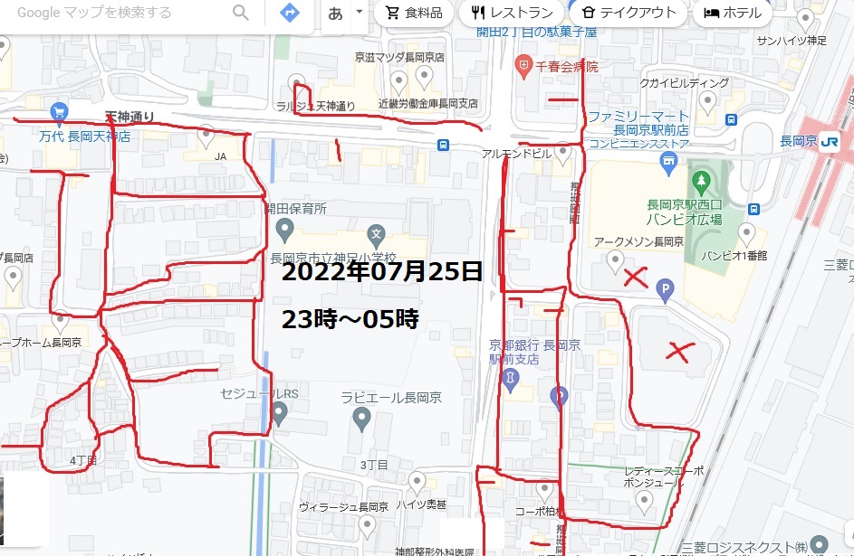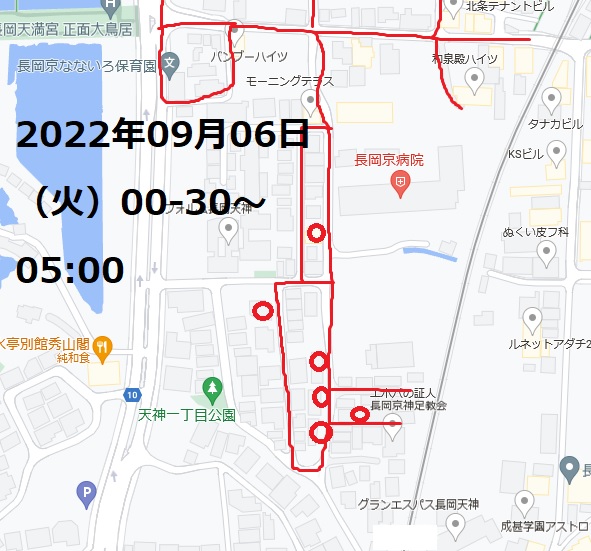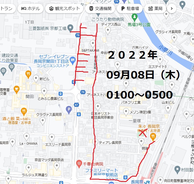 京都府 長岡京市 長岡2丁目・八条が丘2丁目の一部・令和5年(2023年)11月07日(火)22時30分-翌11月08日(水)06時