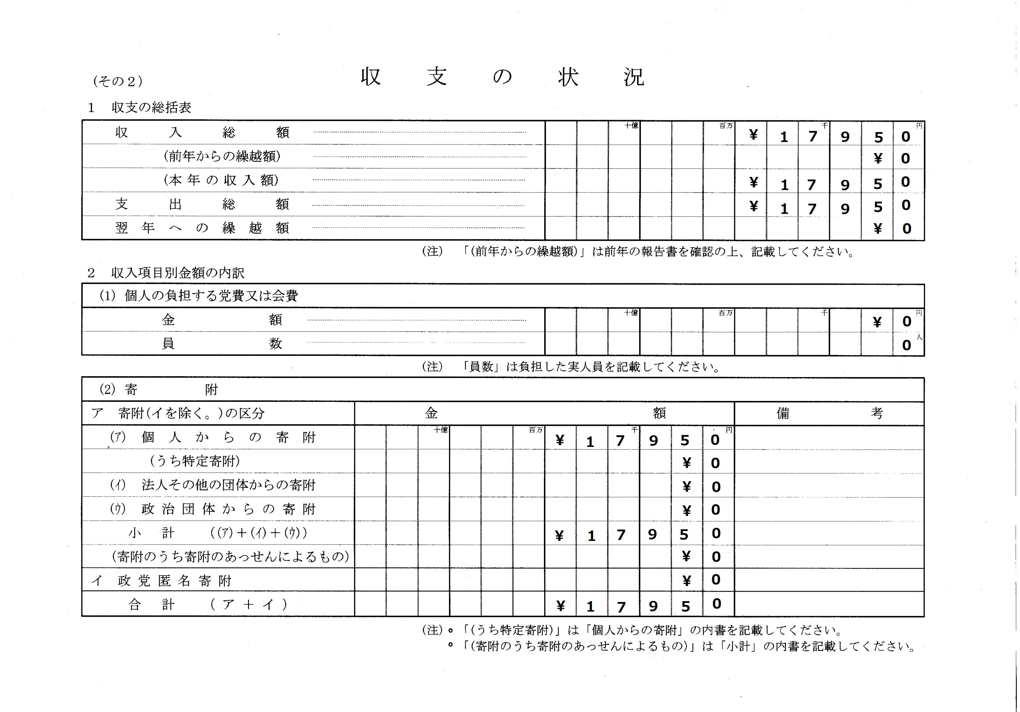 (2)一政治団体に年間(1月1日〜12月31日)計5万円を超える(50,001円以上)寄附をした場合は、収支報告書に氏名・住所・職業・日付等が記載さ