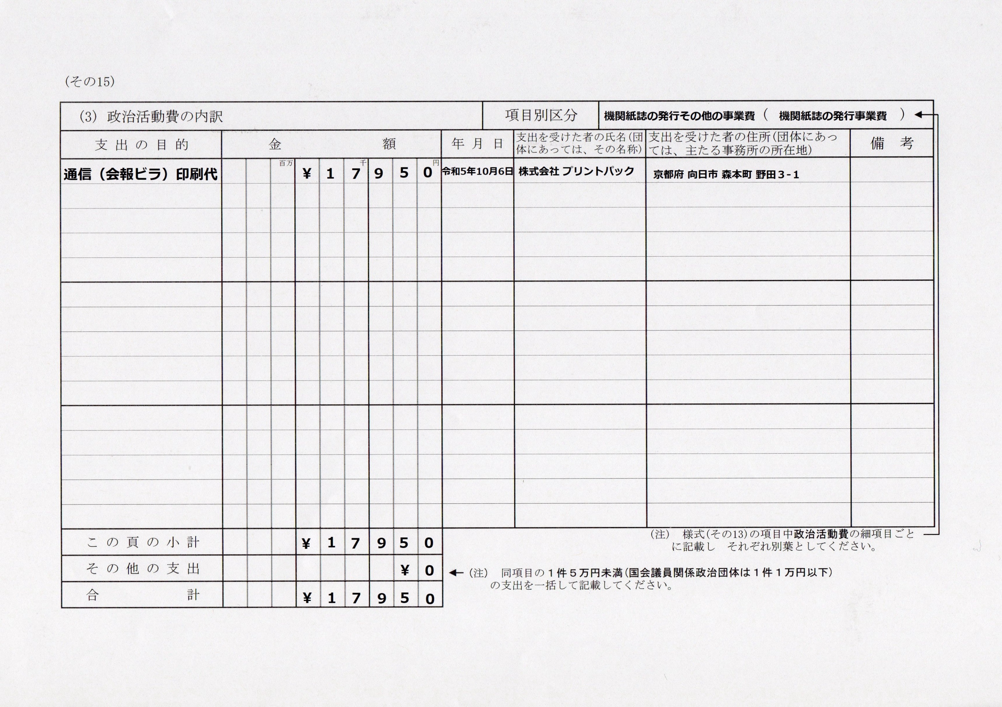 京都府庁へ政治団体収支報告書提出(2024年3月13日)